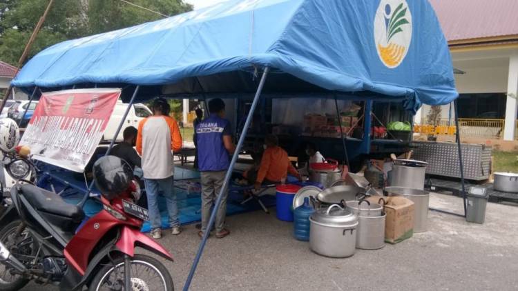 "Kita kan punya relawan Tagana, itu yang yang kita kerahkan kesana, mereka ini lah yang kita minta bertugas disana, ada sekitar 7 sampai 10 petugas, mereka bertugas di dapur umum," ujarnya.