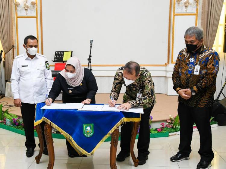 Dalam kunjungan silaturahmi yang berlangsung hangat dan penuh keakraban ini kedua belah pihak berkomitmen saling bersinergi dengan menandatangani kesepakatan bersama terkait layanan jasa perbankan di lingkungan Pemerintah Kabupaten Bengkalis.