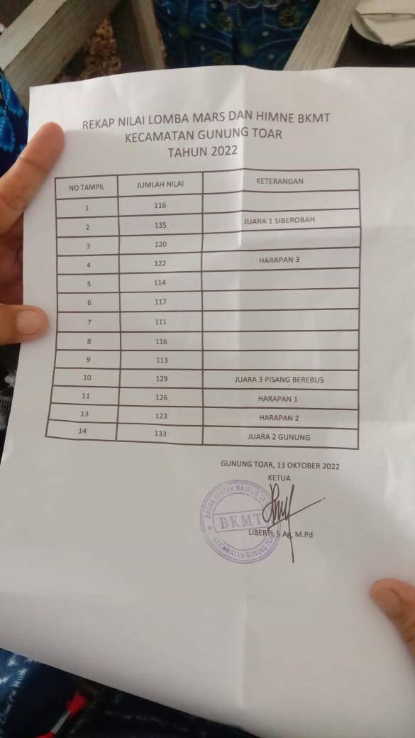"Masyarakat kecewa karena merasa telah dicurangi oleh panitia dan dewan juri. Seharusnya BKMT Desa Siberobah yang menjadi juaranya namun dewan juri dan panitia memutuskan BKMT Desa Pisang Berebus yang menjadi juara, padahal BKMT Desa Pisang Berebus jauh di bawah BKMT Desa Siberobah nilainya dan dalam rekap tersebut BKMT Desa Pisang Berebus menduduki peringkat ketiga," ungkapnya, Santu (15/10/2022) siang.