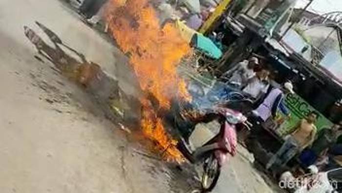 Beberapa saat ditinggal istirahat, motor tiba-tiba terbakar. Api berkobar hebat di bagian belakang.