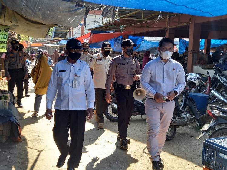 RIAUJURNAL.COM, Taluk Kuantan - Tim gabungan dari TNI-Polri, Kopdagrin, Satpol PP dan Dishub Kabupaten Kuantan Singingi (Kuansing) menggelar Operasi Yustisi dan imbauan kepada masyarakat tentang Covid-19, bertempat di Pasar tradisional Berbasis Modern Kecamatan Kuantan Tengah Kabupaten Kuantan Singingi, Rabu (28/07/2021) Pukul 09.00 WIB.