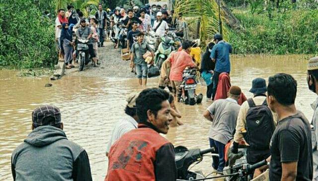 “Kalau kondisi tidak pasang tidak masalah. Karena di daerah kita ada waktu yang pasang dalam. Kemarin kita ukur terjadi penurunan lagi jembatannya,” jelas Umar yang telah turun ke lokasi jembatan tersebut.