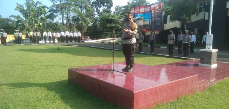 RIAUJURNAL.COM, Teluk Kuantan - Kapolres Kuantan Singingi (Kuansing) AKBP Henky Poerwanto SIK MM melalui Kabag Ops Polres Kuansing Kompol Erde Dianto SH dalam arahannya saat apel pagi di Mapolres Kuansing memerintahkan agar personil Polres Kuansing yang dalam kurun waktu hampir satu bulan ini di tugaskan ke polsek-polsek agar diperpanjang waktunya dan menambah jumlah personilnya mengingat adanya peningkatan jumlah masyarakat Kuansing yang terkonfirmasi positif Covid-19, guna pelaksanaan penanganan dan penangulangan penyebaran pandemi covid-19 di Kabupaten Kuantan Singingi. Terutama untuk wilayah kecamatan yang tingkat penyebaran covid 19 meningkat, Senin (14/6).