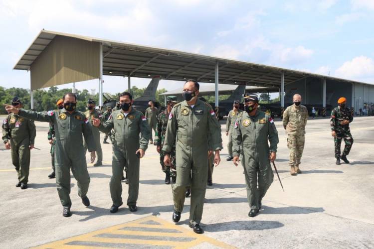 Orang nomor satu di jajanan TNI-AU itu, berkesempatan meninjau pelaksanaan Latihan Bersama (Latma) dengan TNI Angkatan Udara dengan United State Pacific Air Force (USPACAF) Amerika Serikat, dengan sandi cope west 2021 yang masih berlangsung di Lanud Rsn Pekanbaru.