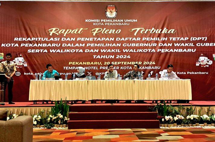 DPT tersebut ditetapkan dalam pleno terbuka rekapitulasi, Jumat (20/9/2024) di Hotel Premier Pekanbaru. Pleno dibuka Ketua KPU Pekanbaru Raga Perwira. Turut mendampingi empat anggota KPU Pekanbaru yakni Rizqi Abadi, Arya Guna Saputra, Siti Syamsiah Hs dan Salmon Daliyoto.