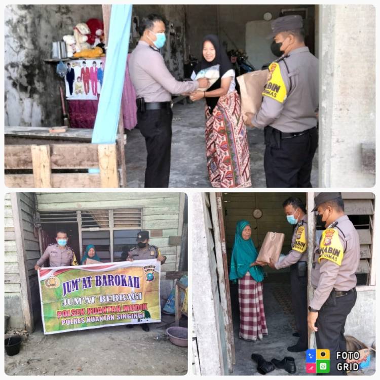 RIAUJURNAL.COM, Kuantan Singingi - Kepolisian Sektor (Polsek) Kuantan Mudik melalui program rutin “Jum'at Barokah” terus membantu masyarakat yang membutuhkan, setiap satu kali dalam seminggu pada hari Jum'at kegiatan berbagi paket sembako sejumlah masyarakat di wilayah Kuantan Mudik Kabupaten Kuansing, Jum'at (21/19/2022) sekira jam 09.00 WIB.