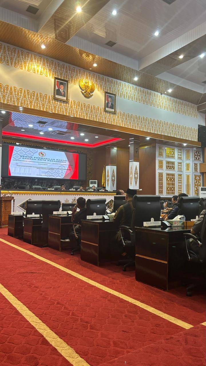 Pekanbaru (RJ) - Satu persatu Anggota DPRD Kota Pekanbaru tampak masuk ke ruang Rapat Paripurna dan melakukan bincang-bincang dengan dewan lainnya. Meski telah menunggu berjam-jam, Pimpinan DPRD baru turun ke ruang paripurna pukul 12.00 WIB untuk melaksanakan Paripurna Pembentukan Alat Kelengkapan Dewan (AKD), Selasa (12/11/2024).