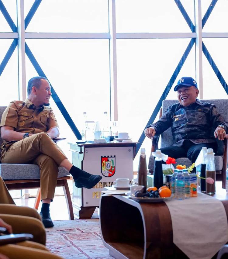 Wali Kota Pekanbaru Agung Nugroho, menerima kunjungan kerja Bupati Kepulauan Meranti, Asmar, bersama Wakil Bupati Muzamil di Kompleks Perkantoran Tenayan Raya, Senin (13/4/2026). Pertemuan ini menjadi lanjutan dari kesepakatan kerja sama yang sebelumnya telah dibangun kedua daerah.