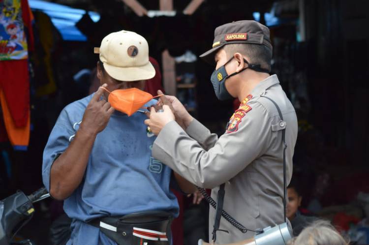 "Tim juga bergerak melakukan pemantauan di Pasar Pelita, menyasar para pedagang dan pengunjung pasar yang tidak disiplin menerapkan protokol kesehatan dalam hal penggunaan masker," terang Kapolsek.
