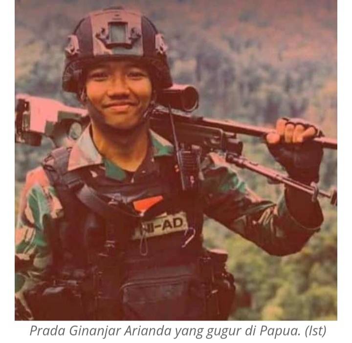 RIAUJURNAL.COM--Seorang prajurit TNI Prada Ginanjar Arianda dinyatakan gugur usai mendapat tembakan dari Kelompok Kriminal Bersenjata (KKB) dari pinggang tembus ke perut.