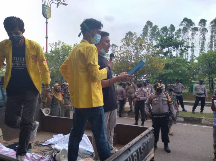 RIAUJURNAL.COM, Kuansing -- Rancana awal aksi damai yang akan dilakukan pada Selasa (23/03/2021) di dua titik yakni di Kantor Kejaksaan Negeri (Kejari) dan di Kantor Bupati Kuansing, ternyata aksi hanya dilakukan pada titik kumpul aksi yang stay di Tugu Carano dengan alasan karena mengingat kembali protokol kesehatan (Prokes) covid yang harus di patuhi.