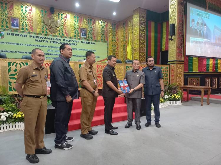 RIAUJURNAL.COM, Pekanbaru - Penjabat Walikota (Pj) Pekanbaru, Muflihun menyampaikan Laporan Keterangan Pertanggungjawaban (LKPj) Kota Pekanbaru tahun 2022. Muflihun juga memaparkan pencapaian Anggaran Pendapatan Belanja Daerah (APBD) Kota Pekanbaru di atas 90% dan 8 prestasi yang yang berhasil diraih.