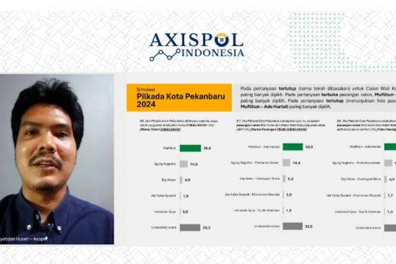 Elektabilitas Paslon Wali Kota-Wakil Wali Kota Pekanbaru nomor urut 1, Muflihun-Ade Hartati unggul berdasarkan hasil survei Axispol.
