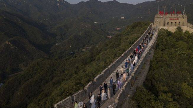 Tembok Besar sektor Kabupaten Shandan, Provinsi Gansu, sepanjang dua meter runtuh saat terjadi gempa tersebut, demikian media China, Senin (10/1/2022).