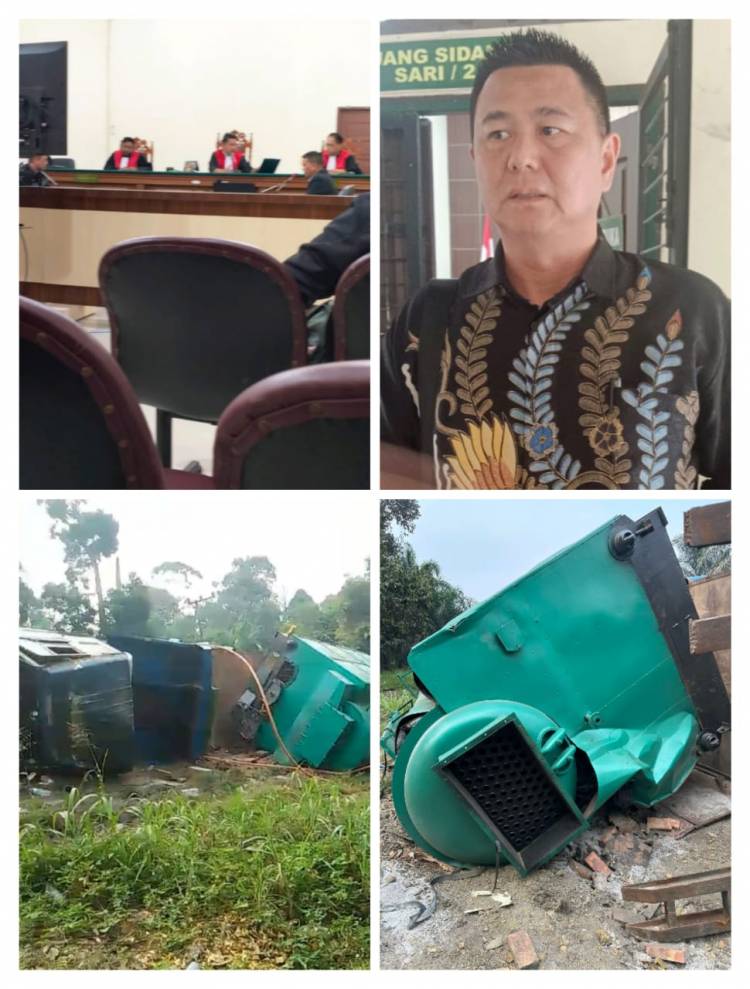 Kerugian materil, akibat kecelakaan yang terjadi sehingga barang milik klien kami berupa boiler seharga 3 milyar rupiah ditambah biaya penyewaan pengangkut crane sebesar 150 juta rupiah.