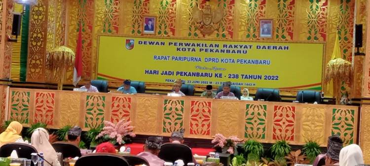 RIAUJURNAL.COM, Pekanbaru - Dewan Perwakilan Rakyat Daerah (DPRD) Kota Pekanbaru menggelar Rapat Paripurna Istimewa Hari Jadi Kota Pekanbaru ke-238, Kamis (23/6) di Balai Payung Sekaki gedung DPRD Kota Pekanbaru.