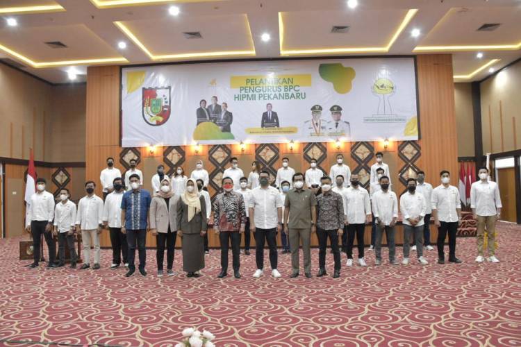 RIAUJURNAL.COM, Pekanbaru - Badan Pengurus Cabang (BPC) Himpunan Pengusaha Muda Indonesia (HIPMI) Kota Pekanbaru periode 2021-2023 resmi dilantik, pelantikan digelar di Ballroom Lantai 6 Kantor Walikota Pekanbaru Tenayan Raya, Selasa (21/9/2021).