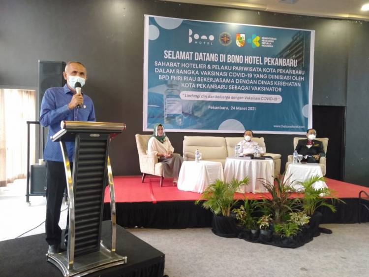 RIAUJURNAL.COM, Pekanbaru -- Perhimpunan Hotel Dan Restauran Indonesia (PHRI) Provinsi Riau bekerja sama dengan Dinas Kesehatan kota Pekanbaru dan Dinas Kesehatan Provinsi Riau melaksanakan vaksinasi Covid 19 untuk pekerja hotel dan restoran pada Rabu (24/03). Kegiatan vaksinasi ini dilaksanakan di Hotel Bono yang ada di Jalan Riau.