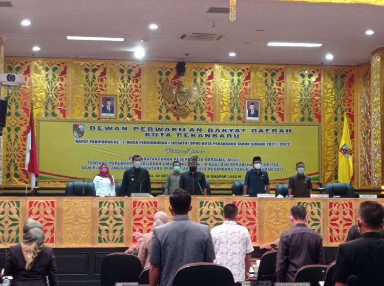 RIAUJURNAL.COM, Pekanbaru - Dewan Perwakilan Rakyat Daerah (DPRD) Kota Pekanbaru menggelar rapat paripurna penandatanganan kesepakatan bersama (MoU) Kebijakan Umum Anggaran dan Prioritas Plafon Anggaran Sementara (KUA-PPAS) APBD Perubahan tahun anggaran 2021. Rapat berlangsung di Ruang Paripurna Gedung Balai Payung Sekaki, Rabu (22/9/2021).