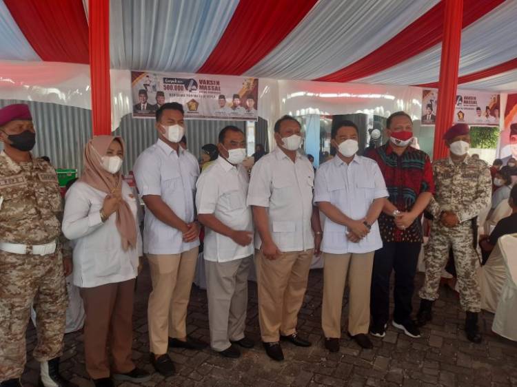 Vaksinasi massal digelar di kantor DPD Partai Gerindra Jalan Arifin Achmad, Kota Pekanbaru, Senin (20/9/21).