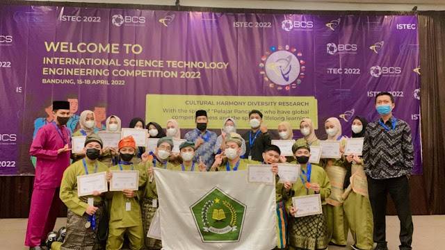 RIAUJURNAL.COM, Bandung - Tim Riset siswa-siswi MAN 1 Kota Pekanbaru berhasil mengukir prestasi dengan meraih 3 medali perak dan 5 medali perunggu pada final International Science Technology and Engineering Competition (ISTEC) tahun 2022 yang digelar pada 15-18 April di Kota Bandung-Jawa Barat.