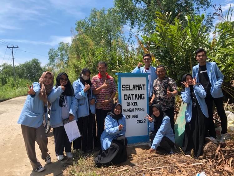 RIAUJURNAL.COM - Mahasiswa KKN Universitas Riau di Sungai Piring membuat tugu selamat datang dan selamat jalan, kegiatan ini dilakukan di Perbatasan Sungai Piring, Kecamatan Batang Tuaka, Sabtu (13/8/2022).
